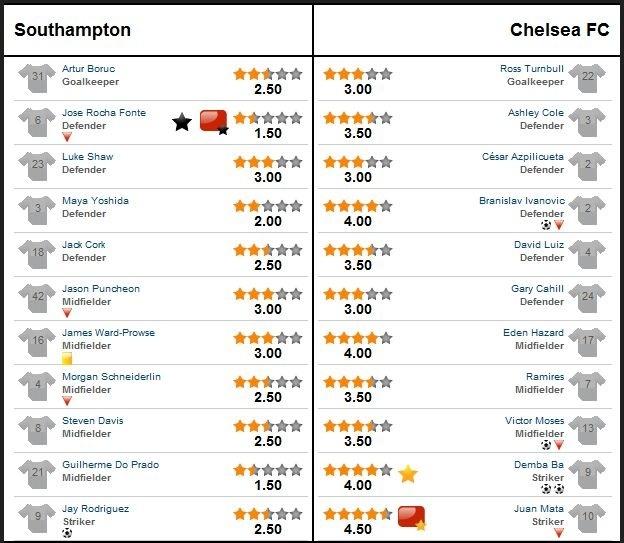 تقييم اللاعبين لـ مباراة [ تشلسي vs ساوثهامبتون ] "ماتا نجم اللقاء"
